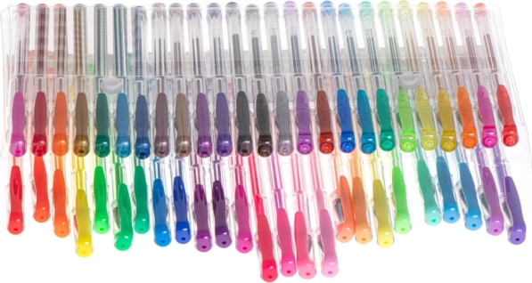 Das Set kombiniert glitzernde, metallische, fluoreszierende und pastellfarbene Töne, sodass Sie leicht den richtigen Effekt für jede Idee wählen. Transparente Stiftkörper ermöglichen die Kontrolle des Tintenstands und das praktische Etui sorgt zuhause wie unterwegs für Ordnung.
