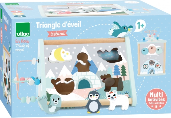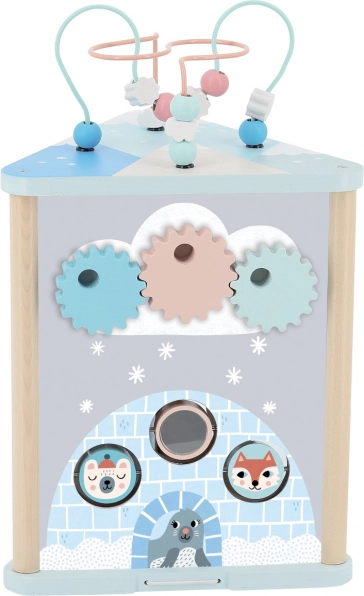 Dieses Holzspielzeug mit dem Thema Winterreich enthält mehrere Aktivitäten, die Ihrem Kind helfen, seine Fähigkeiten zu entwickeln: