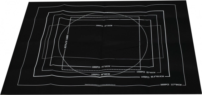 Weiße Konturrahmen auf der Matte zeigen die empfohlene Fläche für 500 bis 3000 Teile an, sodass Sie immer wissen, wie viel Platz Sie benötigen.