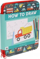 Dieses tragbare Kreativset fördert Fantasie, Feinmotorik und Geduld. Dank der übersichtlichen Anleitung lernen Kinder, verschiedenste Fahrzeuge leicht und mit Freude zu zeichnen. Das Metalletui mit Reißverschluss hält alle Utensilien zusammen und ist ideal für Ausflüge, fürs Auto und den Urlaub.