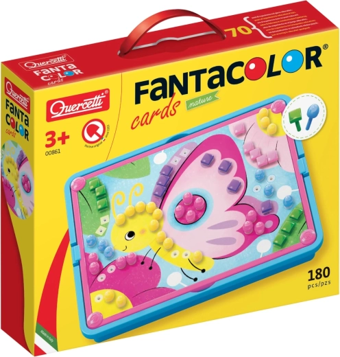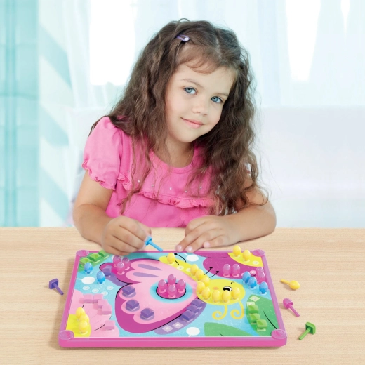 Steckmosaik mit Aufbewahrungskorb und 4 vorgedruckten Bildkarten zum Einstecken der Stifte. Die Mosaikarbeit fördert die Feinmotorik, die Hand-Auge-Koordination und das kreative Denken. Enthält 4 vorgedruckte, perforierte Karten, 180 bunte Steckstifte, eine Steckplatte, einen Halterahmen und einen Aufbewahrungskorb. Empfohlen für Kinder ab 3 Jahren. Packungsinhalt: 1 Aufbewahrungskorb, 1 Steckplatte mit Löchern für die Stifte, 1 Halterahmen, 4 perforierte Bildkarten, 180 bunte Steckstifte in 2 Formen und 6 Farben. Hauptmerkmale: fördert die Feinmotorik, Hand-Auge-Koordination, kreatives Denken