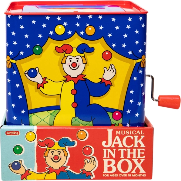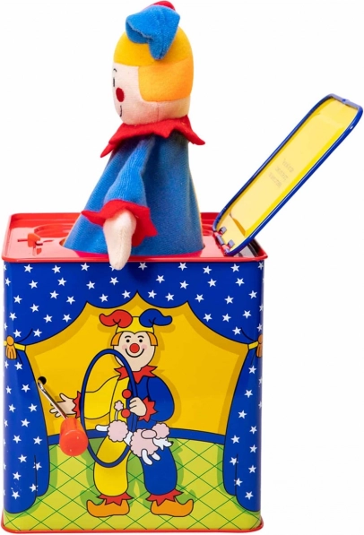 Die Musikbox Clown ist ein zeitloses Spielzeug aus Zinn mit wunderschönem Design, das für Stunden voller Spaß sorgt. Drehen Sie einfach die Kurbel und hören Sie die Melodie des bekannten Liedes „Pop Goes The Weasel“, bis der bunte Clown erscheint.