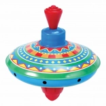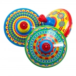 Jeder Kreisel besticht durch bunte, geometrische Muster, die Blicke anziehen und Kinder unterhalten.