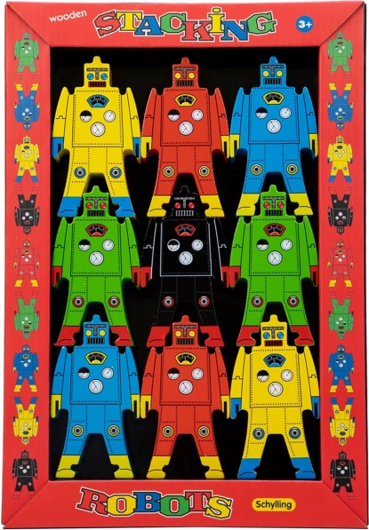 Entdecken Sie die endlosen Baumöglichkeiten mit den farbigen SCHYLLING Holzrobotern. Jede Figur ist sorgfältig aus hochwertigem Holz mit einer robusten, ungiftigen Oberfläche gefertigt und somit ideal für kleine Baumeister ab 3 Jahren. Das Spiel fördert Konzentration, Auge-Hand-Koordination und räumliches Wahrnehmen.