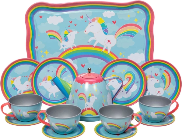 Schylling Einhorn-Teeset, 15-teiliges Metallsset für Kinder
