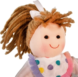 Weicher Stoffkörper, gestickte Augen und feine Garnhaare bieten Sicherheit selbst für die Kleinsten. Ideal als erste Schmusepuppe.