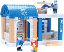 Diese detailliert gestaltete Holzeisenbahn ist ideal für kleine Ingenieure, die Züge und Polizeiabenteuer lieben. Sie umfasst eine Strecke mit Brücke, eine attraktive Polizeistation und weiteres Zubehör, einschließlich Auto und Hubschrauber.