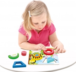 Geeignet für zu Hause und für Kindergärten – das einfache Steckprinzip fördert die Selbstständigkeit und entwickelt auf natürliche Weise Geduld und Konzentration. Sichere, glatte Kanten und satte Farben erleichtern die Orientierung in Formen und Farben.