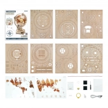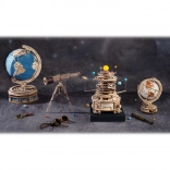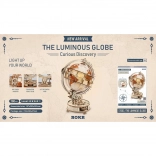 Dieser 3D-Bausatz verbindet clevere Mechanik mit ästhetischem Design. Der Holzglobus mit freiliegenden Zahnrädern lässt sich leicht drehen, die warm getönte Beleuchtung sorgt für eine angenehme Atmosphäre, und dank der mechanischen Lupe lesen Sie bequem auch kleinste Ortsnamen. Der Retro-Look mit reichen Ornamenten wird durch Skalen für Breiten-/Längengrade und Markierungen der Zeitzonen ergänzt.