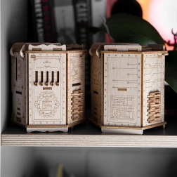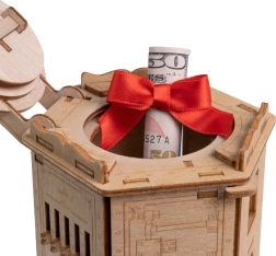 Bereiten Sie sich auf ein Abenteuer vor, bei dem Sie das Geheimnis dieser wunderschön gearbeiteten Kiste entschlüsseln müssen. Alle Teile sind präzise aus natürlichem Birkenholz geschnitten, was diesem Puzzle nicht nur Haltbarkeit, sondern auch ein ästhetisch ansprechendes Aussehen verleiht.