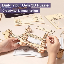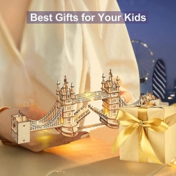 Entdecken Sie die Atmosphäre Londons mit einem realistischen Tower-Bridge-Modell aus hochwertigem Sperrholz. Die Teile greifen präzise ineinander, wodurch der Aufbau flüssig und unterhaltsam ist. Die integrierte LED-Beleuchtung verleiht dem fertigen Bau abends eine gemütliche Note und hebt die durchdachten architektonischen Details hervor.