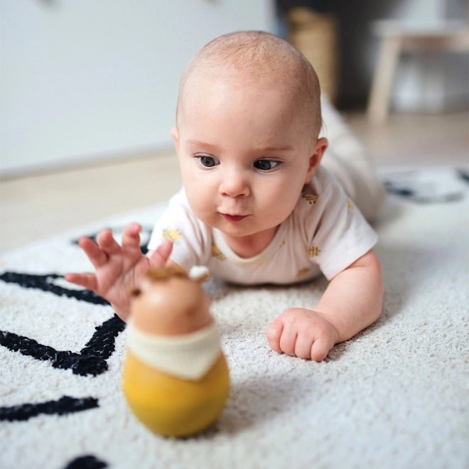 Interaktives Spielzeug mit integrierter Glöckchenkugel, die bei jeder Bewegung die auditive Wahrnehmung anregt. Der Selbstaufricht-Mechanismus fördert die motorischen Fähigkeiten.