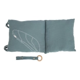Der Stoff der Liegefläche passt sich optimal der Körperform des Kindes an und ist leicht zu pflegen. Die Holzkonstruktion besteht aus hochwertigen, natürlichen Materialien, die Umweltfreundlichkeit und Sicherheit betonen. Die Tragfähigkeit der Schaukel beträgt bis zu 30 kg, was eine lang anhaltende Nutzung gewährleistet.