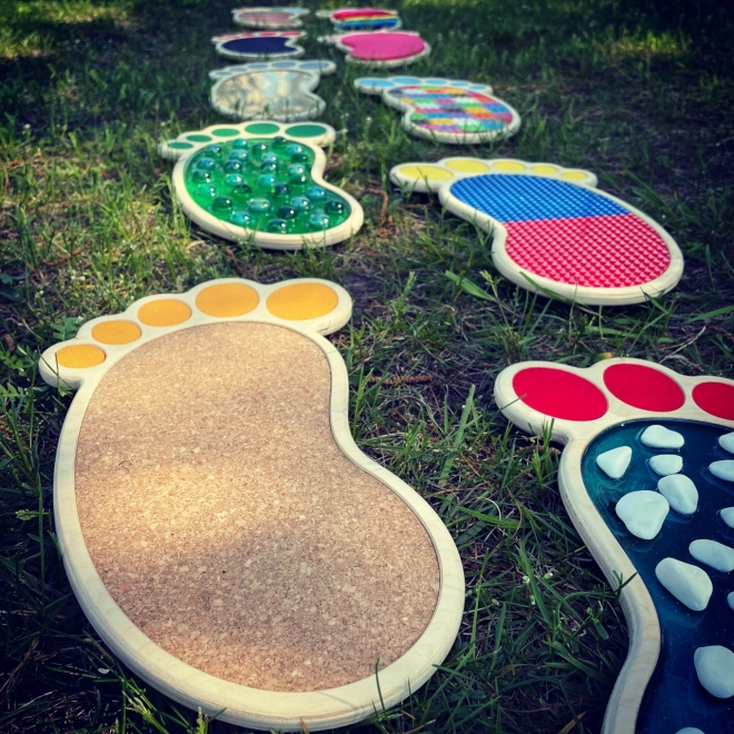 Das Set sensorischer Spuren und Kreise ist so konzipiert, dass es robust und strapazierfähig ist, ideal für den täglichen Gebrauch. Farbige und kreative Designs erhöhen die Ästhetik Ihres Raumes und können auch für verschiedene Aktivitäten genutzt werden. Stilvolle und stabile Holzorganizer ermöglichen eine einfache Aufbewahrung des Sets.