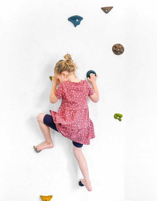 Die Griffe sind so gestaltet, dass sie sich nicht drehen, was maximale Sicherheit für kleine Kletterer bietet.