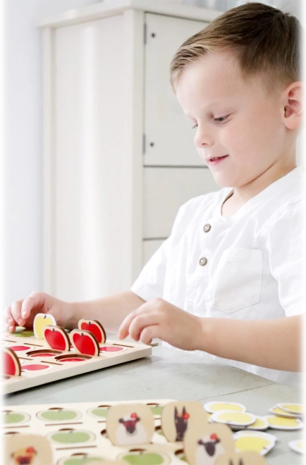 Bunte Illustrationen von Tieren und Äpfeln auf den stabilen Tafeln laden zum Spielen ein und halten auch intensiver Nutzung stand. Ideal für wiederholte Runden zu Hause und unterwegs.