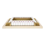 Diese moderne Version des Klassikers Shut the Box mit eleganten goldenen Details unterstützt Kinder bei der Entwicklung früher Mathematik, Logik und Konzentration. Umklappbare Klappen mit den Zahlen 1–10 animieren dazu, die Summen der Würfelwürfe zu üben und schnell zu entscheiden – und das alles in spielerischer Form.