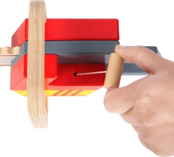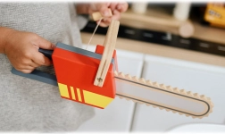 Diese hochwertige Kinder-Motorsäge aus Holz verbindet langlebige Verarbeitung und sicheres Design für den täglichen Spielspaß. Auffällige rote und gelbe Elemente mit realistischer Sägenform regen die Fantasie an und fördern Rollenspiel sowie die Feinmotorik.