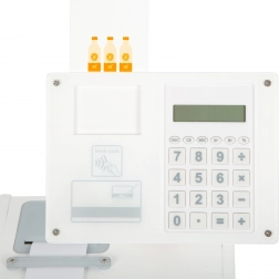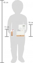 Ein integrierter Taschenrechner im drehbaren Monitor, eine Abreißrolle für Belege und ein Kartenschlitz ermöglichen Kindern einen realistischen Einkaufsablauf – vom Scannen der Ware bis zum Belegdruck.