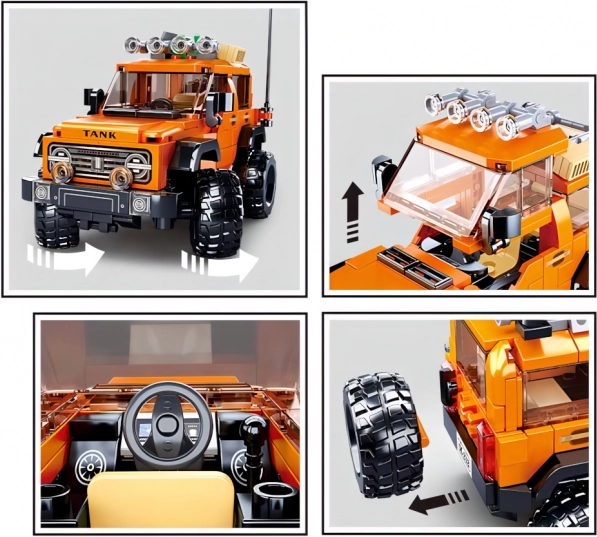 Entdecken Sie den Bauspaß mit einem Geländewagen, inspiriert von amerikanischen SUVs. Das Modell in orange‑schwarzer Ausführung mit massiven Rädern, Dachgepäckträger und detailliertem Kühlergrill ist ideal für actionreiche Szenarien oder als Schaustück im Regal. Dank robustem ABS-Kunststoff ist das Set langlebig und sicher.