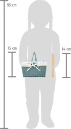 Begeben Sie sich auf ein Familienpicknick! Mit diesem Picknickkorb, der alles enthält, was für zwei Personen benötigt wird, wird jeder Ausflug in den Garten oder die Natur zu einem einzigartigen Erlebnis. Der Korb ist ein tolles Zubehör für Kinder, da er die Vorstellungskraft und Kreativität beim Rollenspiel fördert. Sie finden darin Holz-Teller, Messer und Lebensmittel, die dank Klettverschlüssen zusammenbleiben. Das innere Futter ist leicht zu reinigen, was zusätzlich zur Praktikabilität beiträgt.