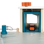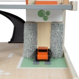 Kinder befördern die Autos mit dem Aufzug nach oben und lassen sie über sanfte Rampen hinunterfahren. Realistische Elemente und mechanische Schranken erhöhen Spannung und Spielwert.