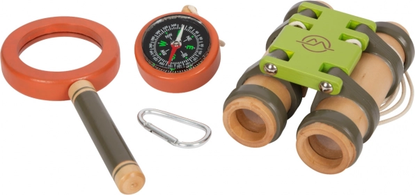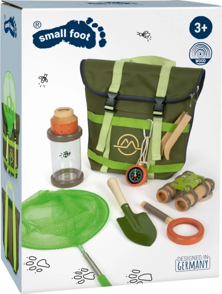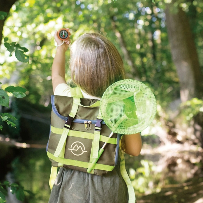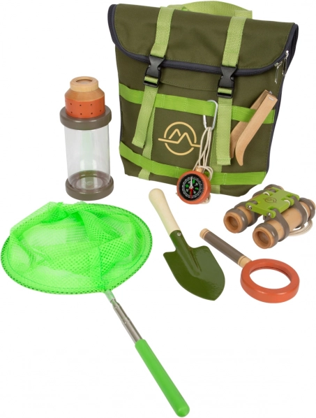 Beinhaltet ein komplettes Set von Werkzeugen für junge Entdecker. Von der Lupe bis zum Kompass ist alles Notwendige im Rucksack enthalten.