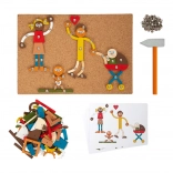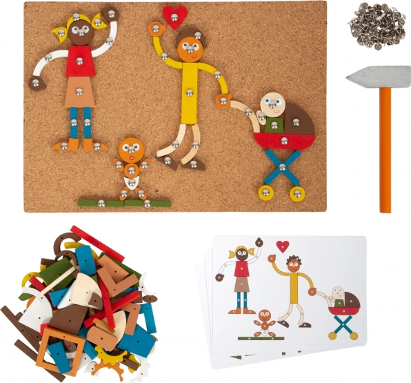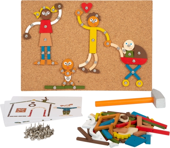 Der Holzhammer und die Reißnägel ermöglichen es Kindern, durch ein unterhaltsames Spiel Präzision und Feinmotorik zu üben.