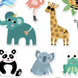 In die Wildnis mit Vilac-Magneten. Entdecken Sie das fröhliche Set von Holzmagnetschildern mit originellen Illustrationen von Michelle Carlslund. Ideal zur Dekoration von Kinderzimmern oder Küchen.