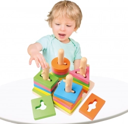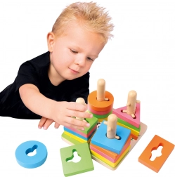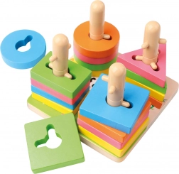 Entdecken Sie ein clever gestaltetes Holzspielzeug für Kinder ab 3 Jahren, das Formen- und Farberkennung, die Förderung der Feinmotorik sowie die Hand-Auge-Koordination verbindet. Beim Aufstecken der farbigen Teile auf Stäbe mit Aussparungen trainieren Kinder spielerisch Logik und Vorstellungskraft.
