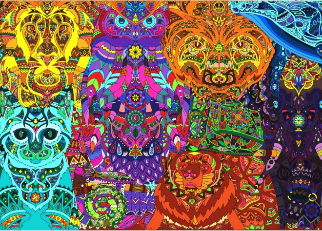 Die Puzzle BRAIN TREE Stammes-Tiere bieten ein visuell fesselndes Motiv voller Farben und Details, das dank Premium-Druck und matter Oberfläche besonders zur Geltung kommt. Jedes Teil ist einzigartig geschnitten, was das Puzzeln spannender und überraschender macht als bei klassischen Gitter-Schnitten.