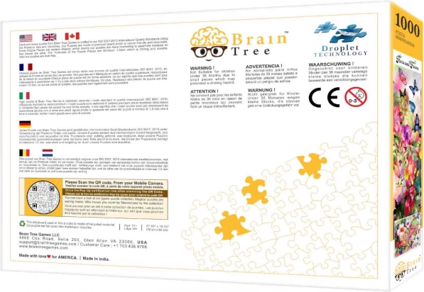 Tauchen Sie ein in die Welt der Farben und Details mit dem Brain Tree Puzzle – Blumen und Schmetterlinge. Die matte Oberfläche gewährleistet perfekte Sichtbarkeit selbst der kleinsten multireliefen Details unter verschiedenen Lichtbedingungen. Durch den zufälligen Stanzschnitt haben die Teile abwechslungsreiche Formen, die dem Puzzeln zusätzlichen Spaß und Herausforderung verleihen.