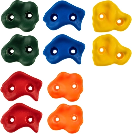 Erweitern Sie den Spielbereich um sichere und langlebige Klettergriffe, die zu Bewegung motivieren und für Spaß an der frischen Luft sorgen. Das Set mit 10 Stück in kontrastreichen Farben (Rot, Gelb, Grün, Blau, Orange) erleichtert die Routenplanung und unterstützt die visuelle Orientierung.