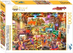 Das Premium-Puzzle von Brain Tree zeigt eine lebendige, detailreiche Szene voller Spielzeuge, Musikinstrumente und ländlicher Scheunenatmosphäre. Die matte Oberfläche verhindert Spiegelungen und lässt selbst feinste, mehrstufige Reliefdetails hervorstechen – ideal bei jedem Licht.