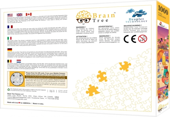 Sie werden das umfangreiche Zubehör zu schätzen wissen: ein Poster 52 × 30 cm für eine leichtere Orientierung, faltbare Karton-Sortierfächer zum Sortieren, ein praktischer Ständer für den Boxdeckel sowie bei 1000-Teile-Sets ein großer, wiederverschließbarer Beutel, der die Teile vor Beschädigung und Verlust schützt. Das fertige Bild misst 70 × 50 cm.