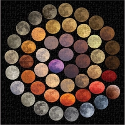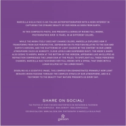 Das Motiv entstand aus Astrofotografien von Marcella Julia Pace, die an verschiedenen Orten in Italien über zehn Jahre hinweg aufgenommen wurden. Jede Aufnahme zeigt, wie sich die Farben des Vollmonds verändern – von Rot und Gelb am Horizont bis hin zu seltenen Blautönen, verursacht durch Staubpartikel in der Atmosphäre.