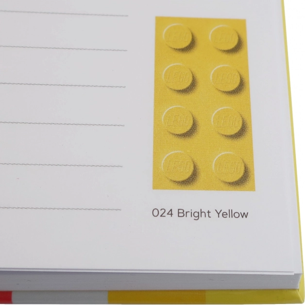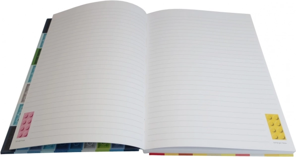 Stilvolles LEGO-Notizbuch im praktischen A5-Format mit 144 liniert en Seiten und Motiven aus dem originalen LEGO Farbmuster. Feste Umschläge aus FSC-zertifiziertem Recyclingkarton mit effektvoller Prägung von Noppen, sodass sich das Notizbuch auch haptisch leicht erkennen lässt. Ideal für tägliche Notizen, Planung und kreative Ideen.