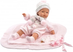 Sprechende Puppe Llorens New Born Joelle Llorona bietet realistische Geräusche und eine Beruhigungsfunktion mit Schnuller, ideal für Unterhaltung und Entwicklung von Kindern.
