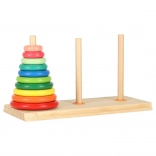 Dieses zeitlose Logikspiel trainiert Geduld und Konzentration: Ziel ist es, alle Scheiben von der ersten Stange auf die letzte zu versetzen, sodass sie wieder von der größten zur kleinsten sortiert sind – dabei darf stets nur eine Scheibe bewegt werden, und eine größere Scheibe darf nie auf einer kleineren liegen. Klingt einfach, fordert aber Kinder wie Erwachsene heraus.