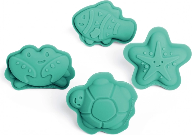 Das Set beinhaltet vier verschiedene Silikonformen in Gestalt von Krabbe, Fisch, Seestern und Schildkröte für die maximale Kreativität Ihrer Kinder.