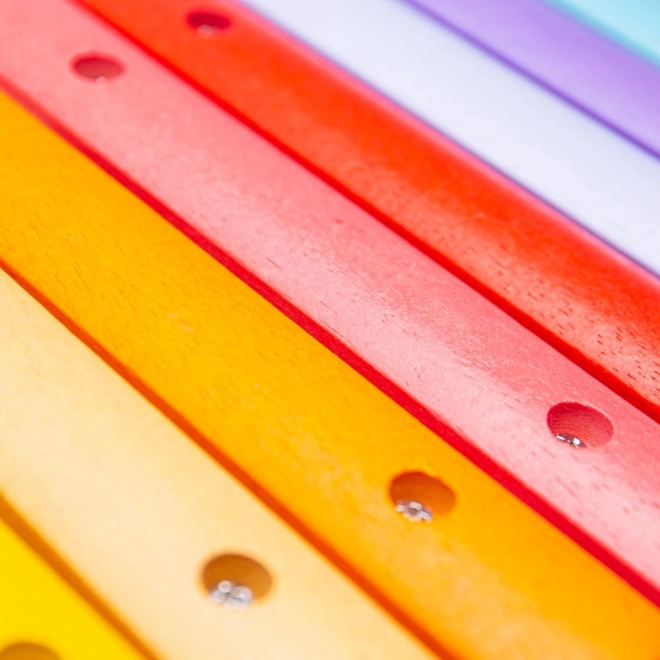 Sichere Schrauben sichern die feste Befestigung der Tasten, was Kinder beim Spielen schützt. Dieses Xylofon ist ideal für die Entwicklung der Koordination und Farberkennung.
