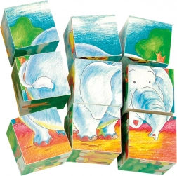Bino Holz-Bilderwürfel – Wildtiere, 9 Teile