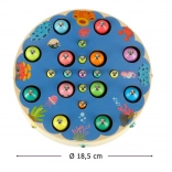 Cleveres Montessori-Spiel für die Kleinsten, das Spiel und Lernen verbindet. Beim Angeln der Fische mit Magnet, Übertragen der Elemente mit Pinzette und Sortieren nach Farben entwickeln Kinder Feinmotorik, Hand-Auge-Koordination, logisches Denken sowie Rechenfertigkeiten. Bunte Holzteile und ein umfangreiches Zubehör laden zum selbstständigen und gemeinsamen Spiel ein.