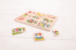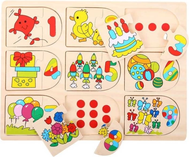 Ihre kleinen Neugierigen werden dieses kleine, interessante und clevere Puzzle lieben. Es macht nicht nur Spaß, die Teile an die richtige Stelle zu sortieren, sie können auch zunächst nur die Bilder einsetzen und diesen anschließend die passenden Zahlen zuordnen. Jedes Teil des Holzpuzzles ist so dimensioniert, dass es das Anheben und Greifen mit kleinen Kinderhänden erleichtert. Die Puzzleteile sind mit Bildern oder Farben bedruckt, die den Lernprozess unterstützen und einen pädagogischen Mehrwert bieten. Eine großartige Möglichkeit, schon im frühen Alter Geschicklichkeit, Formerkennung, Konzentration und Zählen zu fördern. Hauptmerkmale: Hergestellt aus hochwertigen, verantwortungsvoll bezogenen Materialien. Entspricht den aktuellen europäischen Sicherheitsnormen. Abmessungen: 30 × 22,5 × 1,5 cm Alter: 12 Monate+ Material: Holz