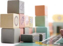 Jede Stadt braucht Straßen und Autos – und dieses Set enthält Puzzles, die zusammengelegt eine Spielfläche mit einer Strecke bilden. Sie finden verschiedene Elemente wie Gebäude, Figuren und Fahrzeuge. Die Bausteine sind in Pastellfarben gehalten, was nicht nur die visuelle Wahrnehmung des Kindes, sondern auch sein logisches und unkonventionelles Denken anregt.