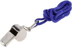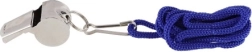 Diese glänzend silberne Metallpfeife ist so konzipiert, dass sie einen klaren Klang projiziert, was sie ideal für sportliche oder Notfallsituationen macht. Sie wird mit einer blauen Textilschnur geliefert, die einen bequemen Tragekomfort um den Hals ermöglicht. Ideal für Trainer, Schiedsrichter, aber auch für Familienveranstaltungen.