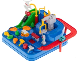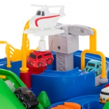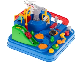 Begeben Sie sich auf eine spannende Fahrt voller Überraschungen. Die interaktive Strecke mit Hindernissen, Zugbrücke und Getrieben prüft die Geschicklichkeit und das logische Denken der Kinder. Die Steuerung ist einfach und macht Spaß – mit Tasten und drehbaren Elementen bewegen Sie die Autos auf der Strecke und erfüllen Missionen der Rettungskräfte.