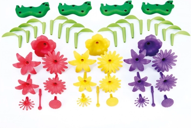 Dank austauschbarer Teile können Kinder unendliche Kombinationen aus Blüten, Stielen und Blättern gestalten. Jedes Arrangement ist einzigartig und fördert Fantasie sowie Feinmotorik.
