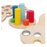 Robuste und langlebige Scheiben sind aus fein geschliffenem Sperrholz gefertigt. Durch verschiedene Stablängen und die Anzahl der Öffnungen auf den Scheiben wird das Spielzeug zu einer natürlichen Herausforderung für kleine Denker.
