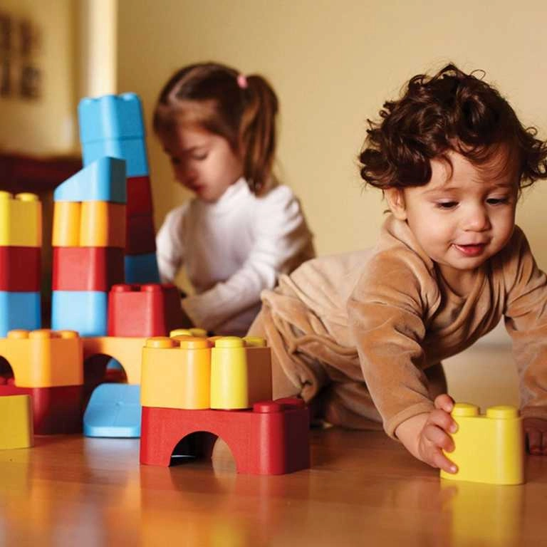 Das Set ist geeignet fürs Kinderzimmer, den Sandkasten und für Wasser – und lässt sich leicht reinigen. Ideal als erstes Konstruktionsset für Kinder ab 6 Monaten.